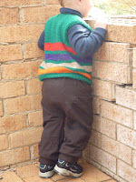 I had this 100% Australian Merno wool jumper sitting in my stash that I bought last time we were in Newtown for $3 from Vinnes that was perfect to make him a new pair. I purposely made them larger so that they should last him hopefully until he starts school - his hem is rolled up 3 times in these pictures and there is plenty of growing into room yet they still fit well now without sagging too much. The following is the method I came up with to create them. If you have basic sewing skills you will find it pretty easy.